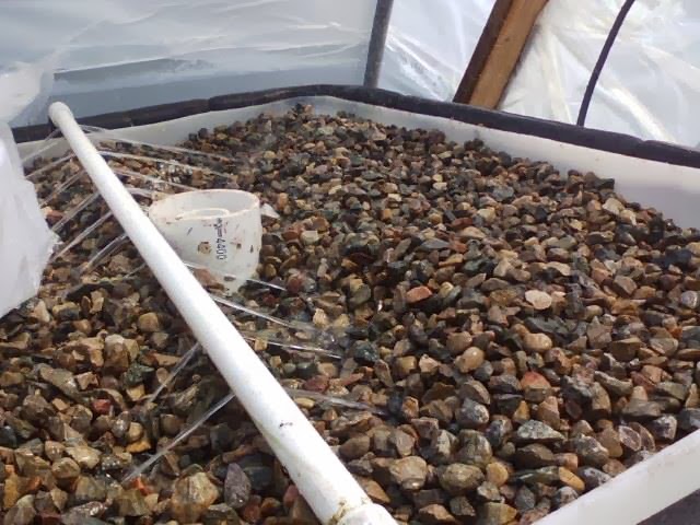 Just a few cuts to put the top upside down into the bottom of the pallet (sounds complicated but not so much) Once it was set in the house .... We added some minnows to start .... Next was the plumbing and gravel that the plants will be growing in .....